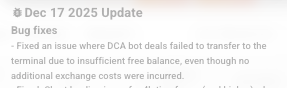 Hello there! We have great news regarding the bug you reported. Our team has implemented a change so that the balance check will now be completely skipped when moving deals to the terminal. This change ensures a smoother experience for your DCA bot deals. Happy trading!