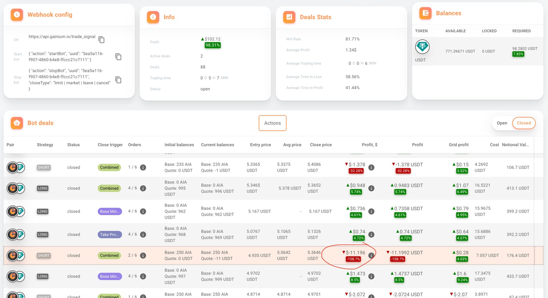 Rest assured, there are no restrictions on closing trades when both deals are active, as the bot continuously monitors all open positions. Also, please note that the bot checks active deals twice a minute, which might result in higher slippage, especially with high leverage.