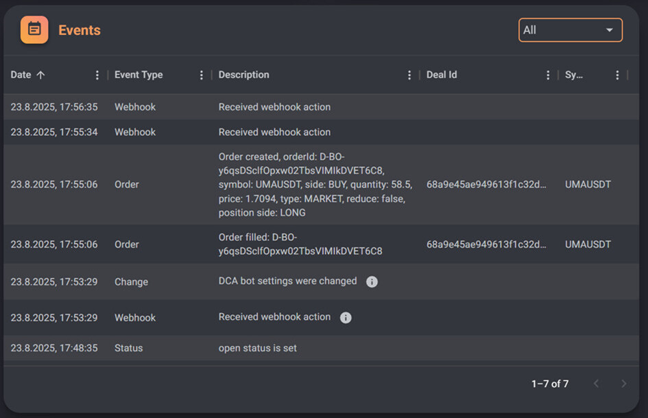 Screenshot for alert was done after all that, so it is not the initial webhook. And the other coins should be added. And in addition: I’ve tested with other bots and other coins, not only this one here. All webhooks that are sent from an alert are ignored.